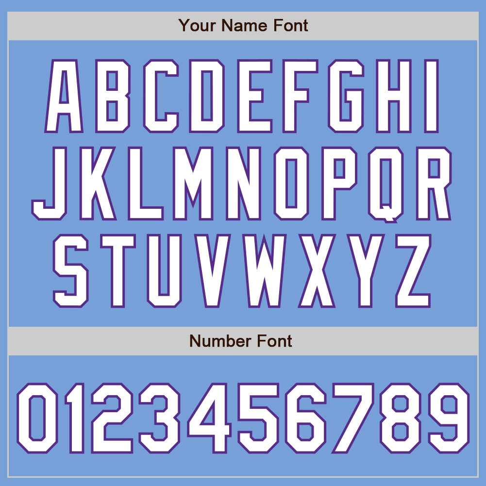 Personalized Light Blue Purple Pinstripe White Two-Button Unisex Softball Jersey Team Custom Name and Number