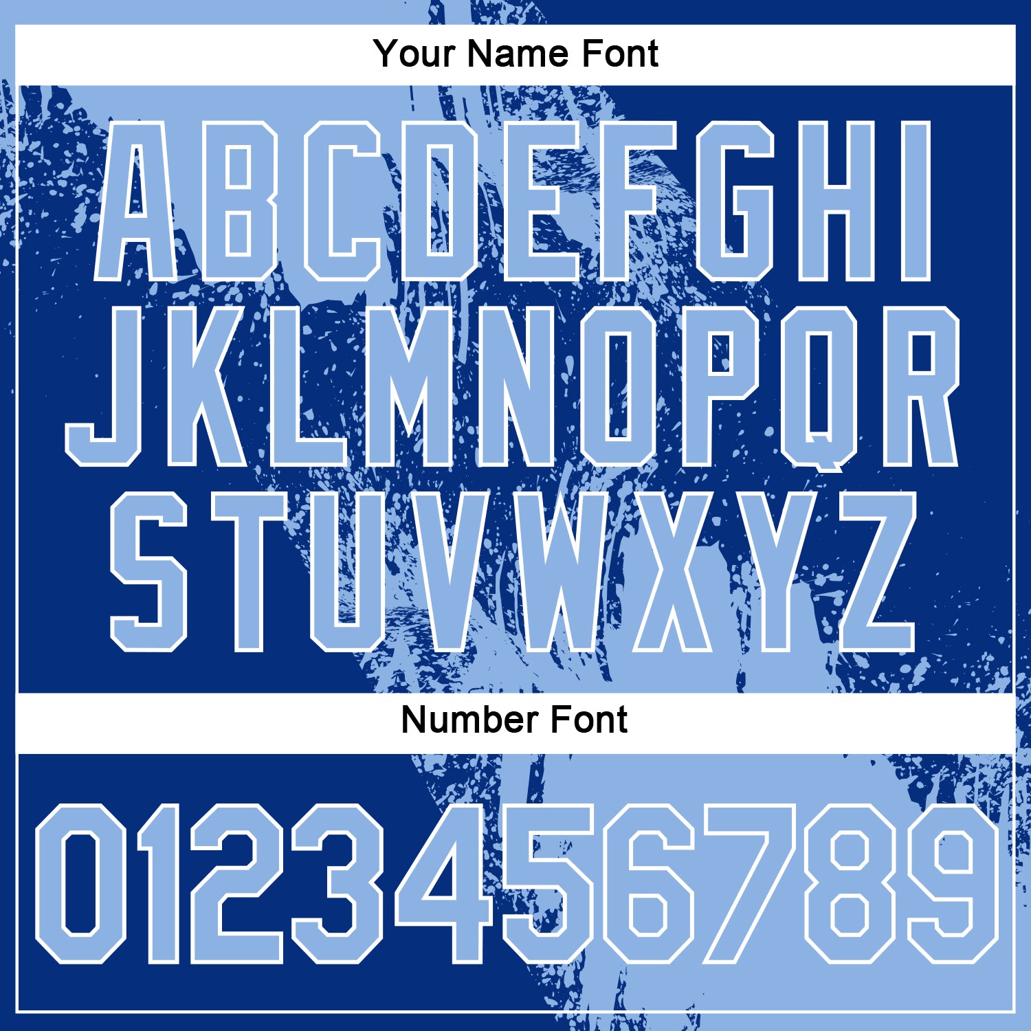 Custom Name & Number 3D Pattern Performance T-Shirt in Light Blue and Royal-White Abstract Brush Stroke Design Personalized