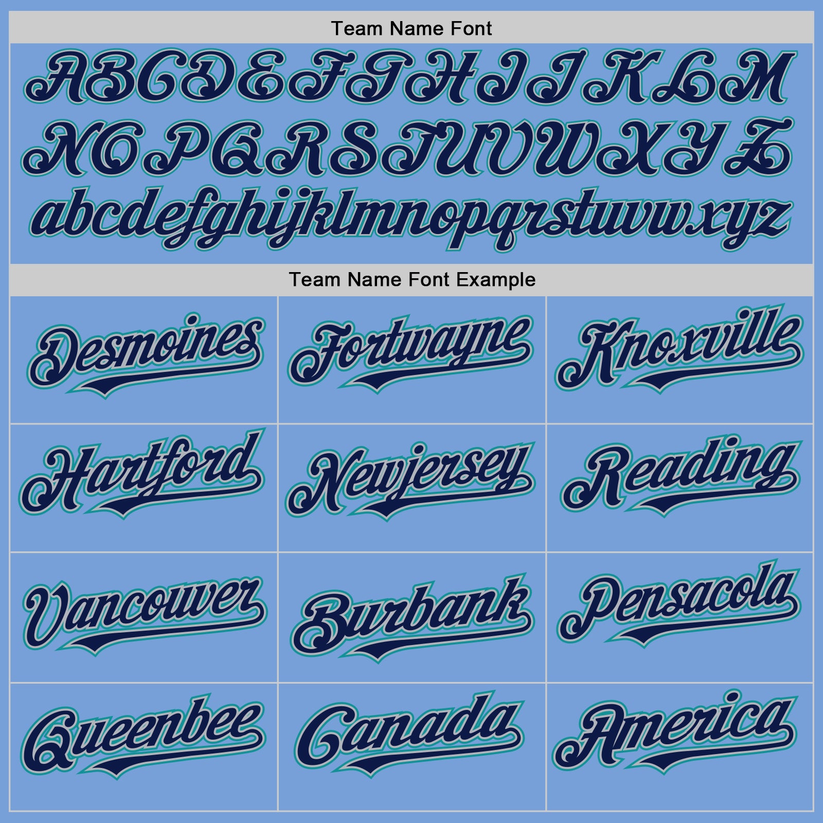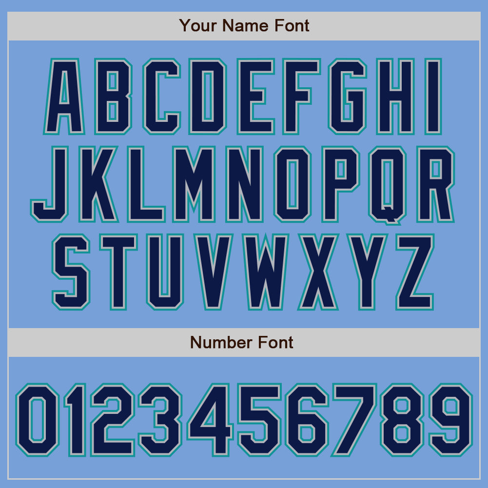 Personalized Custom Name and Number Softball Jersey Light Blue Teal Pinstripe Two-Button Unisex Navy-Gray Personalized Light