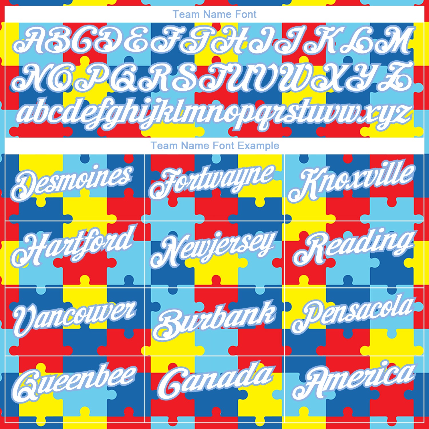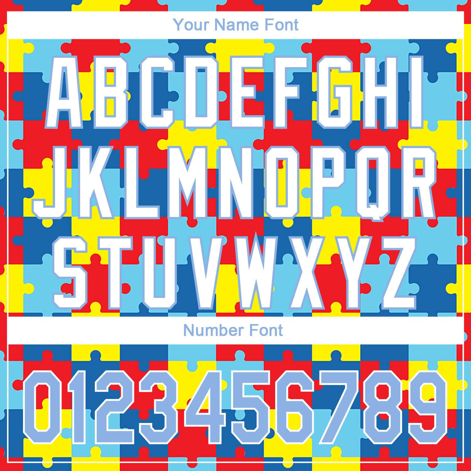 Personalized Light Blue White 3D Pattern Design Autism Awareness Puzzle Pieces Performance Golf Polo Shirt Team Custom Name and Number