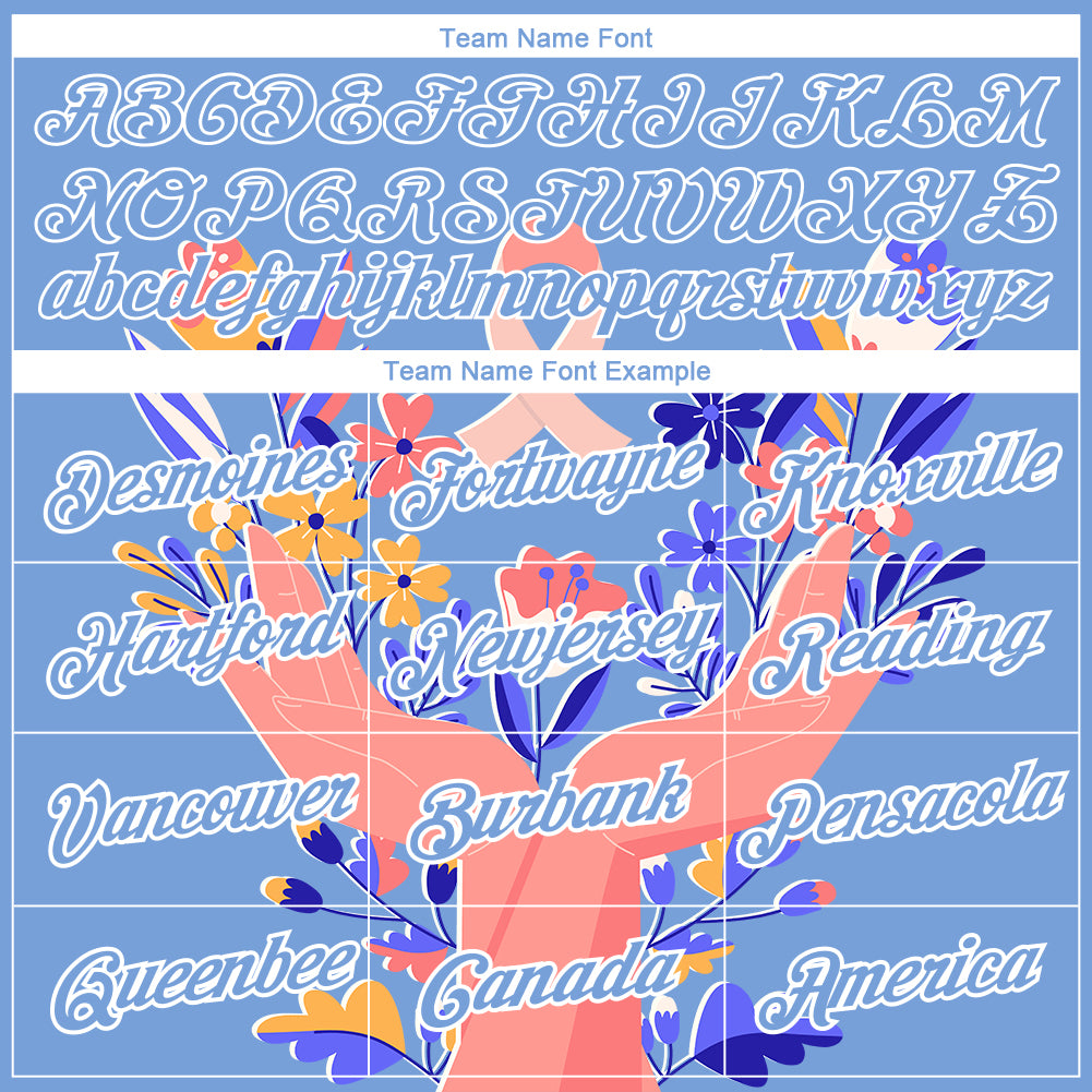 Personalized Light Blue White 3D Pink Ribbon Breast Cancer Performance T-Shirt Team Custom Name and Number