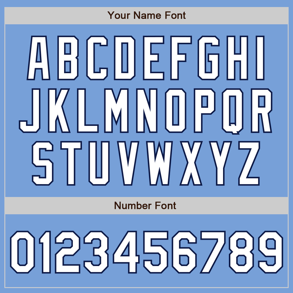 Personalized Light Blue White-Navy Bomber Full-Snap Varsity Letterman Two Tone Jacket Team Custom Name and Number