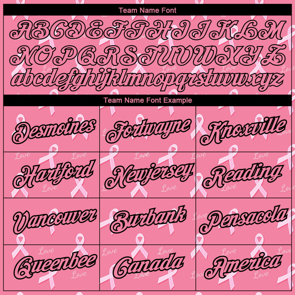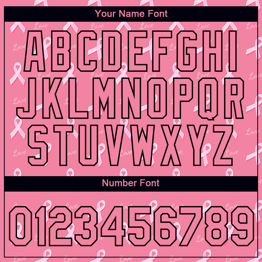 Personalized Medium Pink Black 3D Pink Ribbon Breast Cancer Performance T-Shirt Team Custom Name and Number