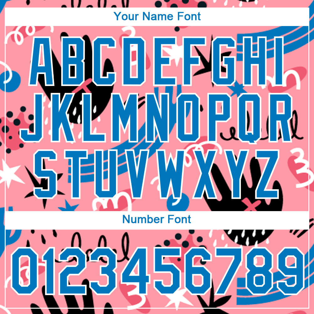 Personalized Medium Pink Powder Blue-White 3D Pattern Design Abstract Doodle Performance T-Shirt Team Custom Name and Number