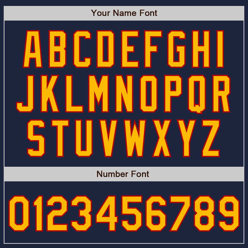 Custom Name and Number Baseball Jersey – Personalized Navy Gold-Red Authentic Raglan Sleeves Personalized Navy Gold-Red Authentic