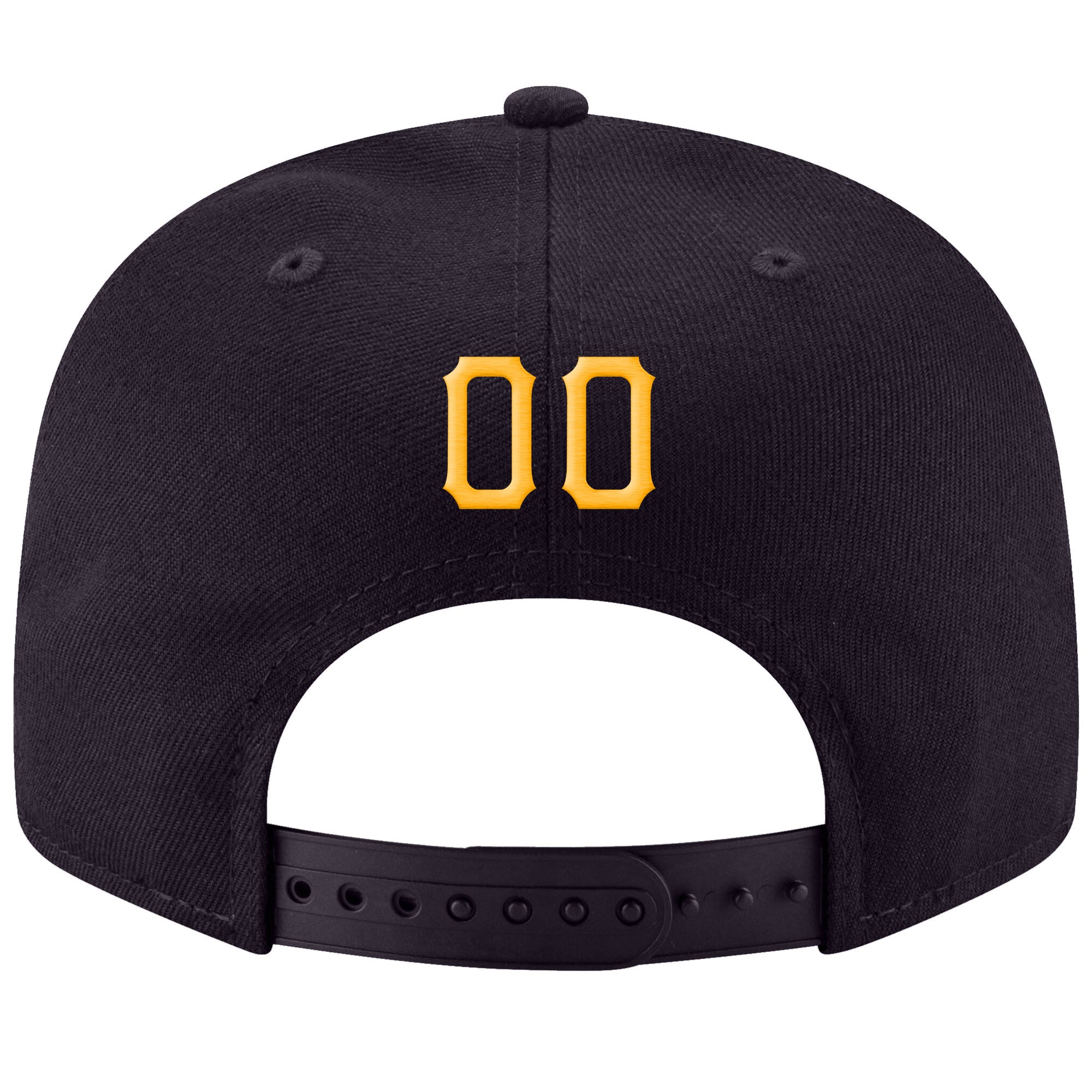 Custom Navy Adjustable Snapback Hat with Gold-White Stitching, Personalized Team Name and Number Personalized Navy Gold-White
