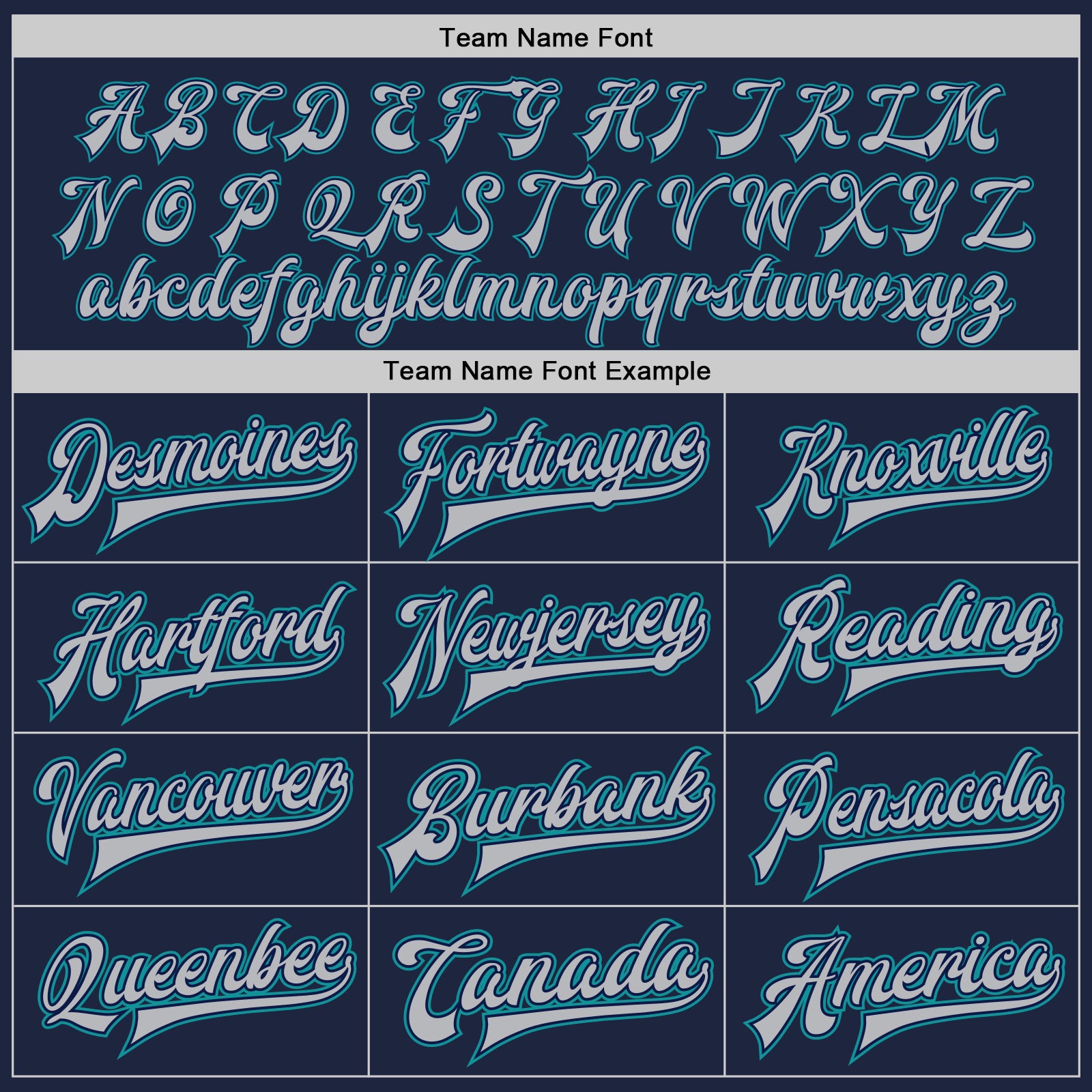 Personalized Navy Gray-Teal Bomber Full-Snap Varsity Letterman Jacket Team Custom Name and Number