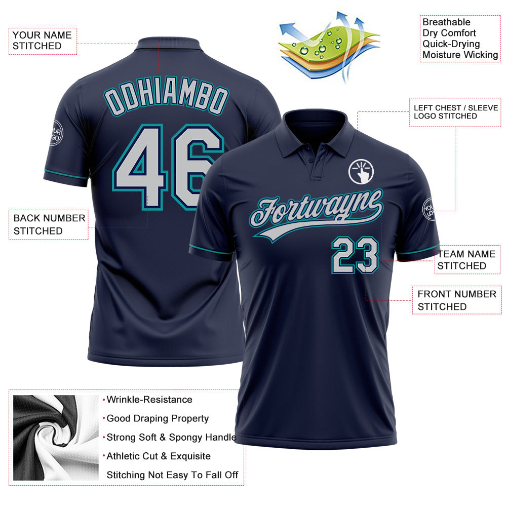 Personalized Custom Golf Polo Shirt Navy Gray Teal with Team Name Number – Performance Vapor Design Personalized Navy Gray-Teal