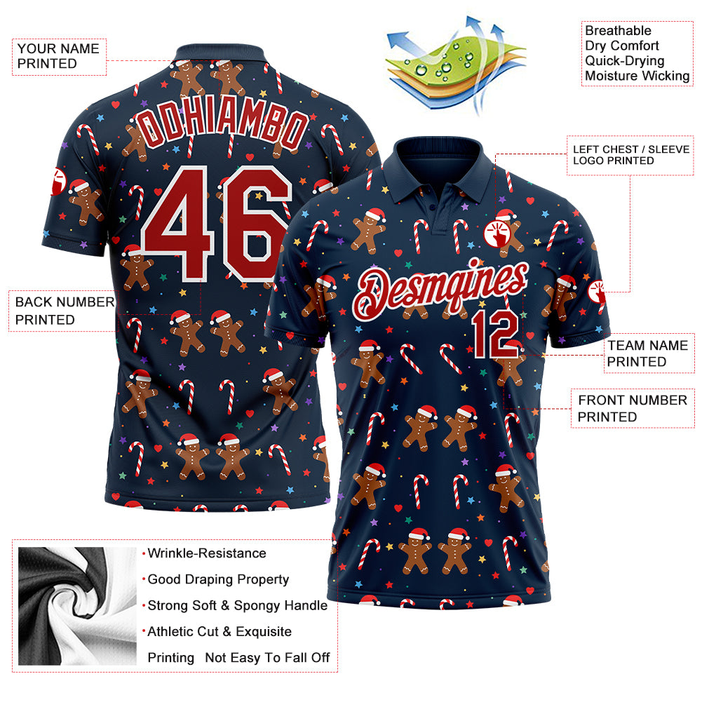 Custom Name and Number 3D Christmas Golf Polo Shirt – Personalized Navy Red-White Performance Team Apparel Personalized Navy