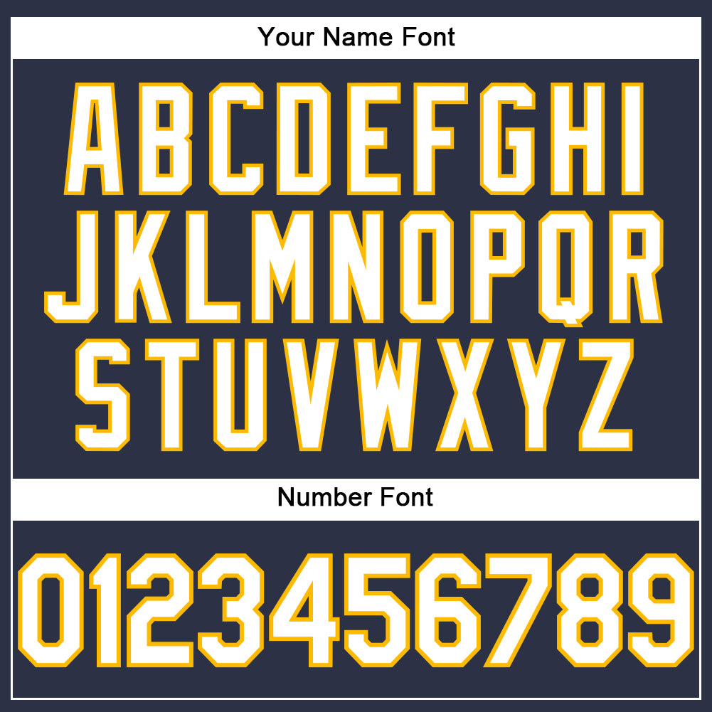 Custom Team Name and Number Performance T-Shirt in Navy and White-Gold – Personalized Sports Apparel Personalized Navy White-Gold