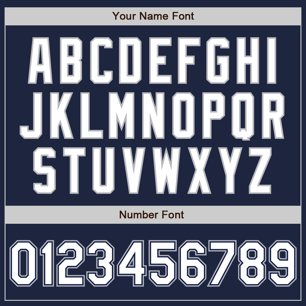 Personalized Navy White-Gray Bomber Full-Snap Varsity Letterman Two Tone Jacket