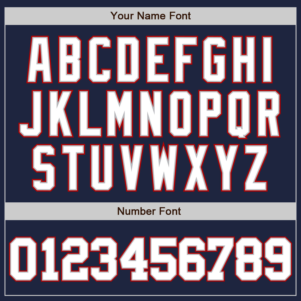 Custom Name and Number Unisex Softball Jersey – Personalized Two-Button Navy White Gray-Red Design Personalized Navy White