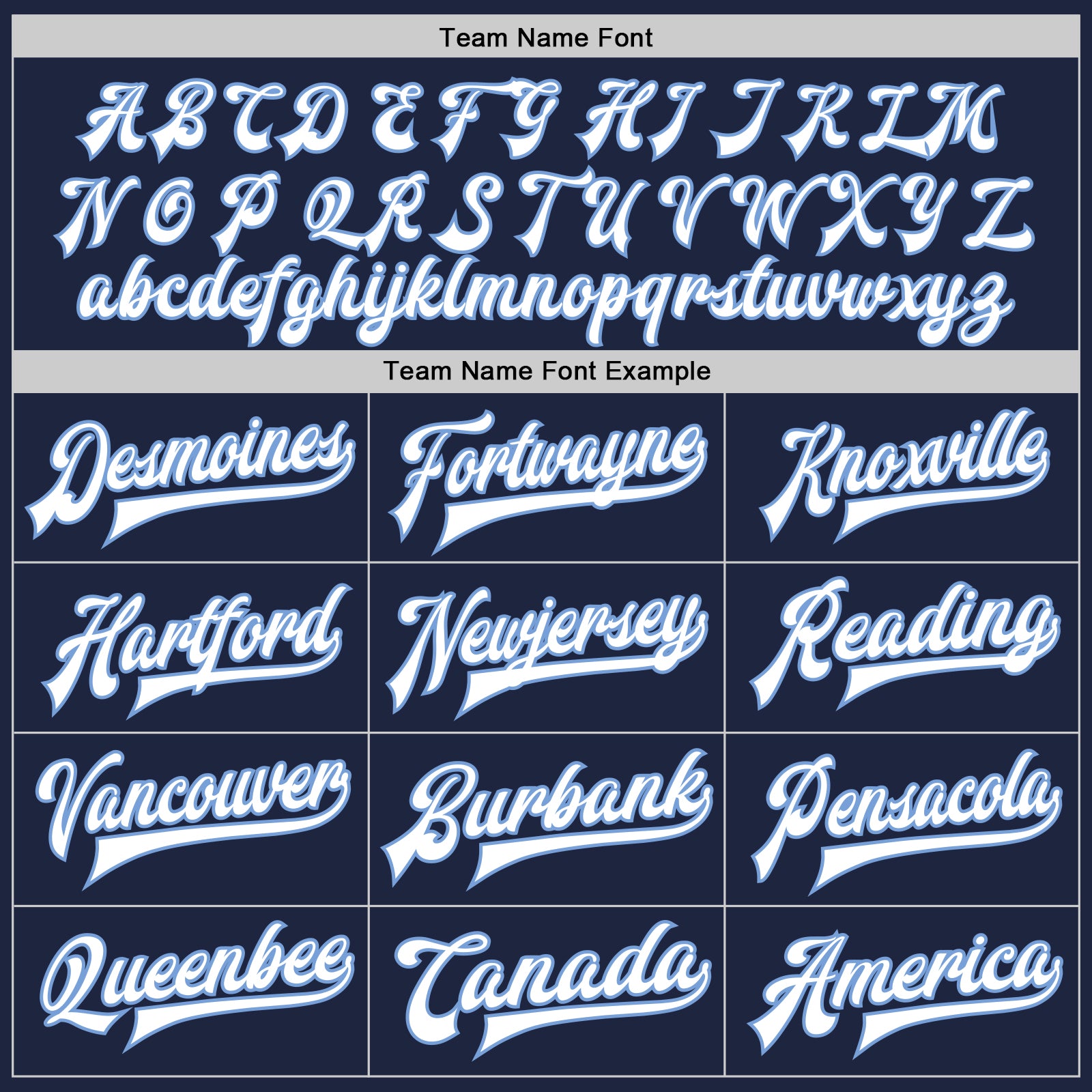 Custom Team Name Number Navy White Light Blue Bomber Varsity Letterman Jacket Personalized Full-Snap Personalized Navy White-Light