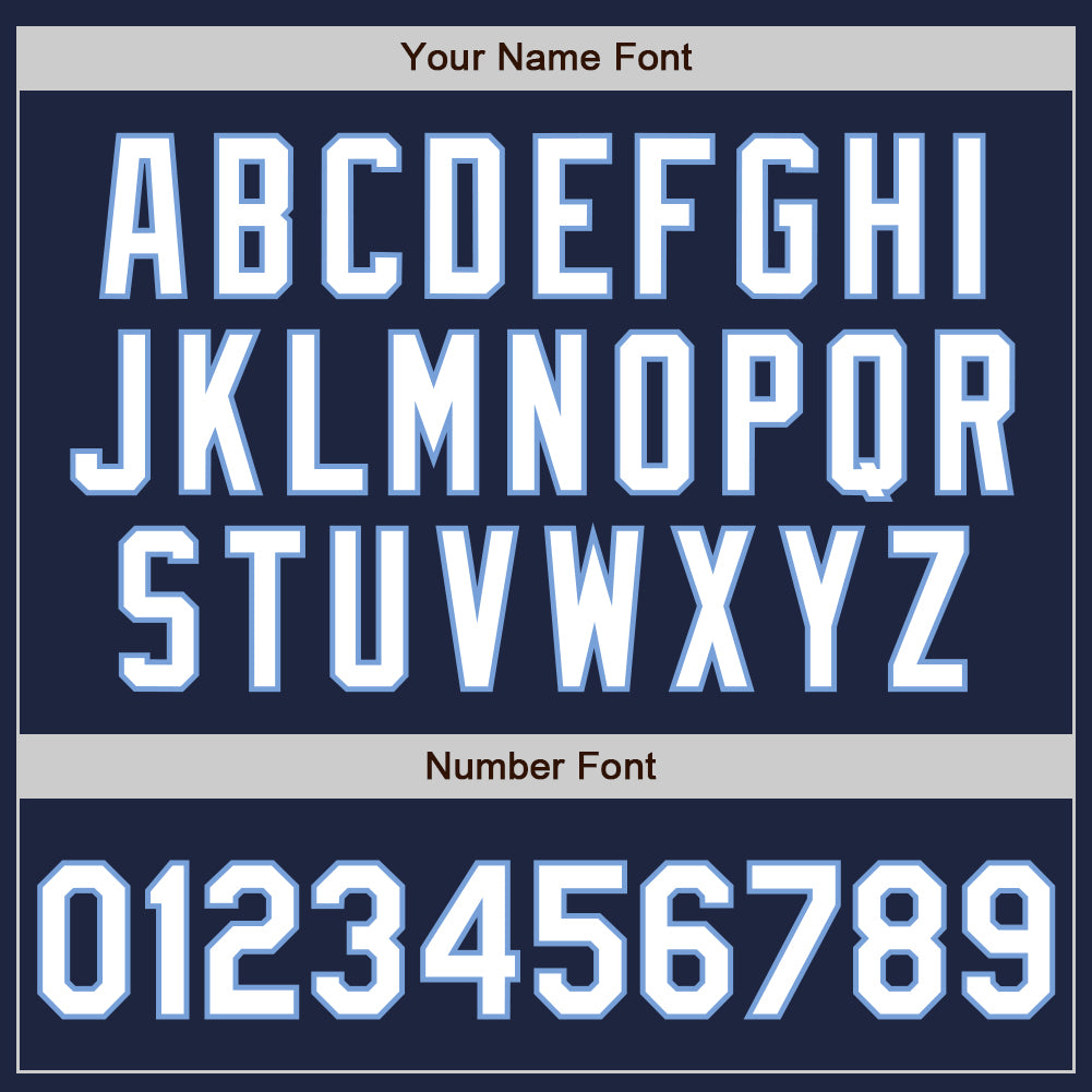 Personalized Navy White-Light Blue Bomber Full-Snap Varsity Letterman Two Tone Jacket Team Custom Name and Number