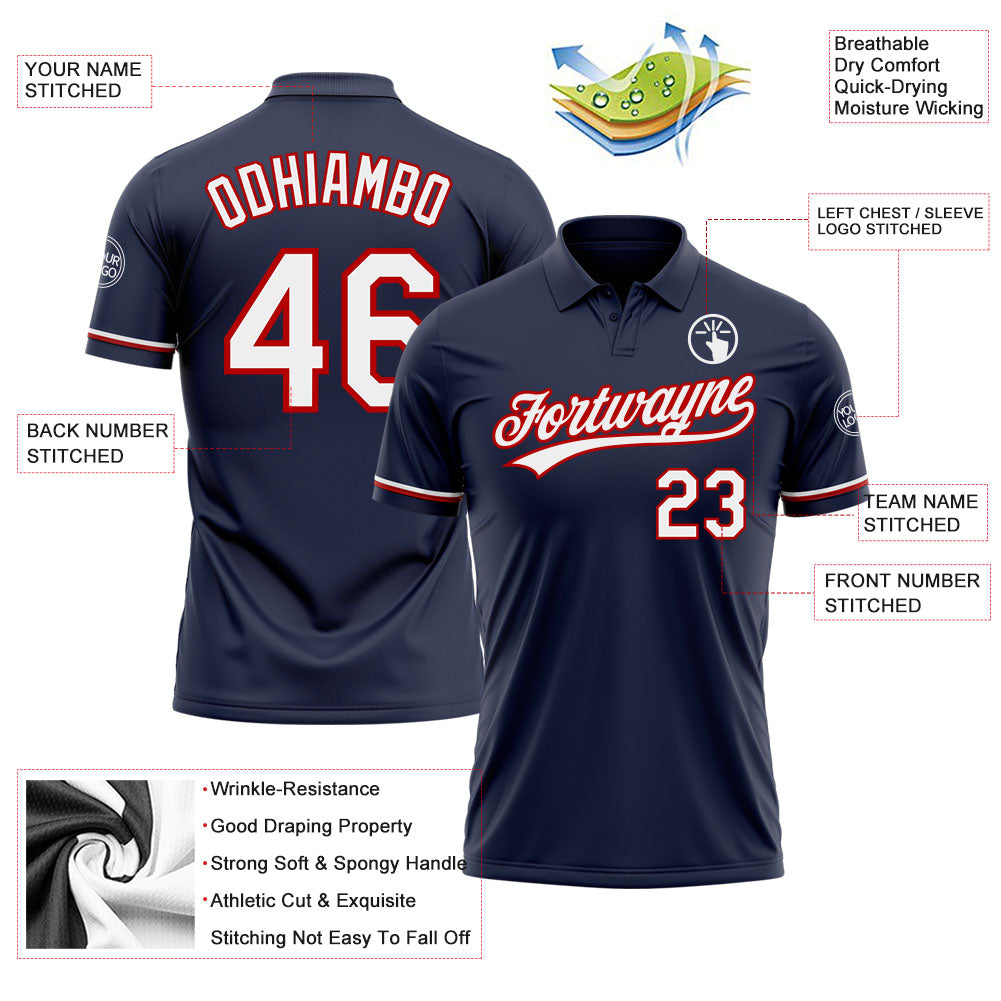 Personalized Navy White-Red Performance Vapor Golf Polo Shirt Team Custom Name and Number