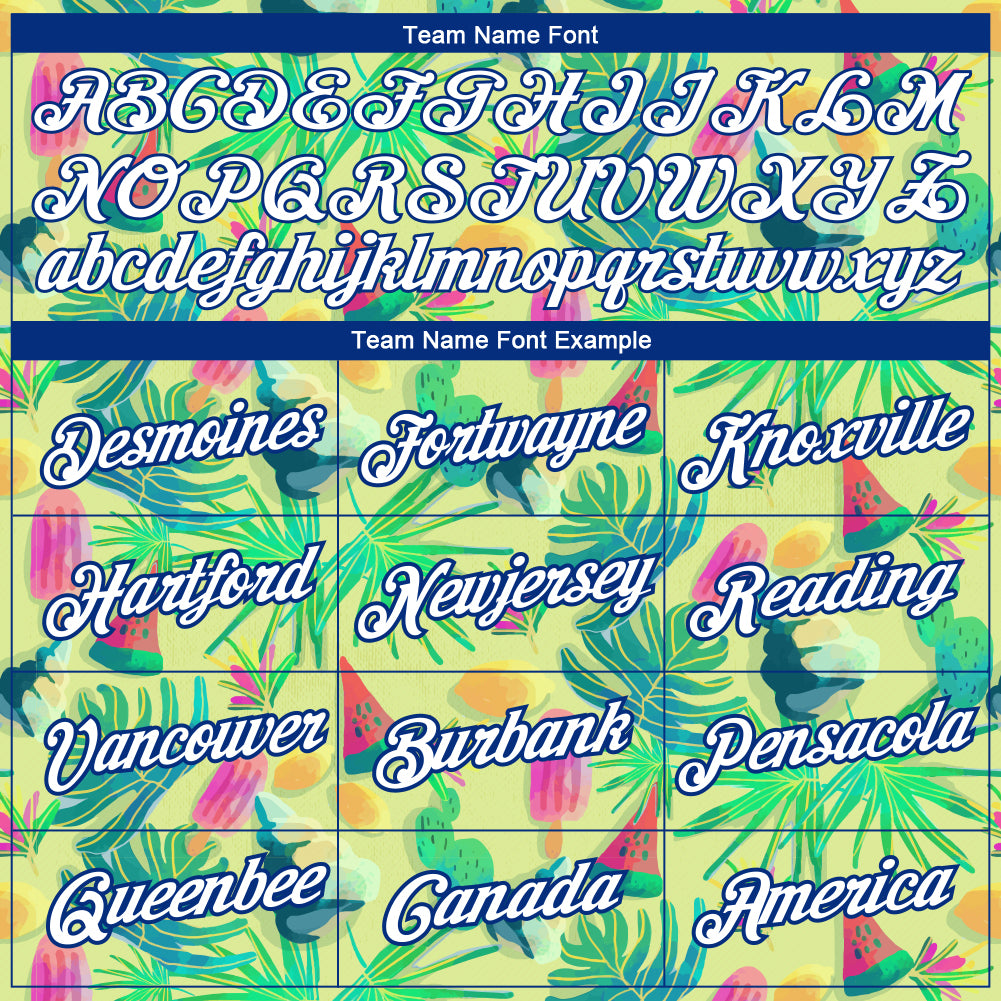 Personalized Neon Yellow White-Royal 3D Pattern Design Hawaii Summer Holiday Performance T-Shirt Team Custom Name and Number