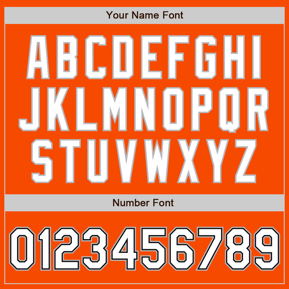Personalized Orange White Black-Gray Bomber Full-Snap Varsity Letterman Jacket Team Custom Name and Number