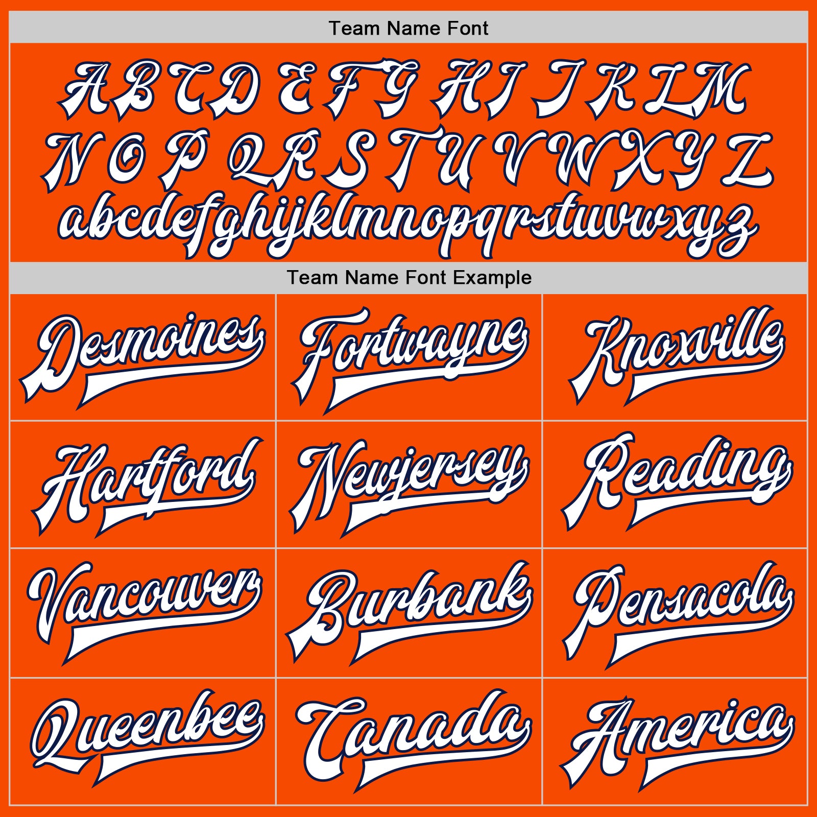 Personalized Orange White-Navy Bomber Full-Snap Varsity Letterman Jacket Team Custom Name and Number