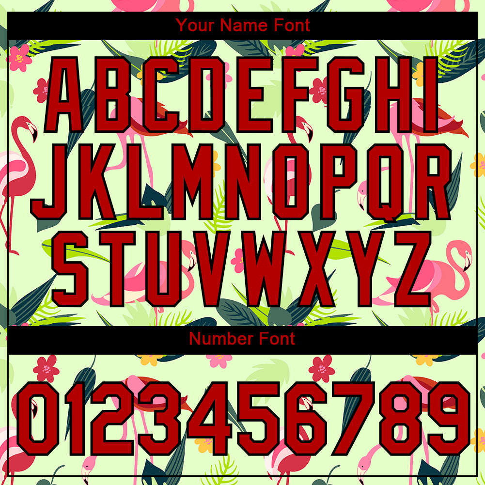 Personalized Pea Green Red-Black 3D Pattern Design Tropical Hawaii Flamingo Performance T-Shirt Team Custom Name and Number