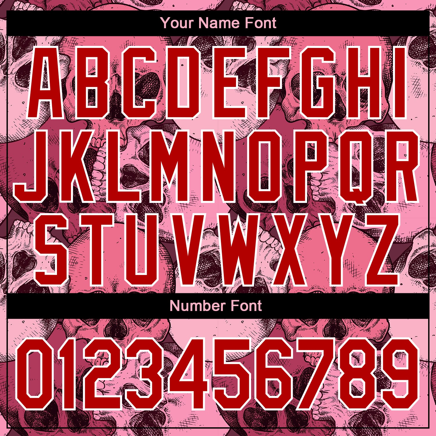 Personalized Pink Red-White Skull With Heart Shaped Eyes 3D Bomber Full-Snap Varsity Letterman Jacket Team Custom Name and Number