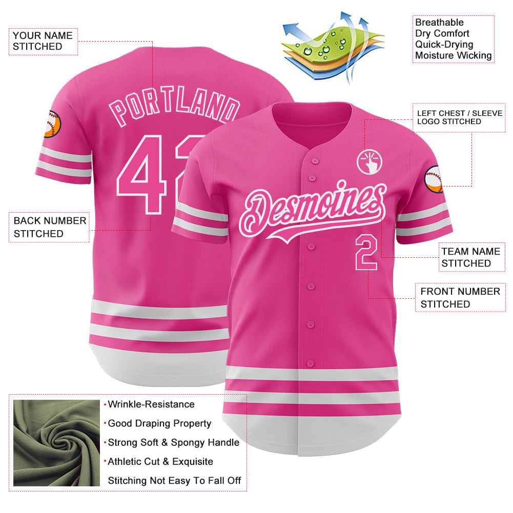 Personalized Pink White Line Authentic Baseball Jersey Team Custom Name and Number