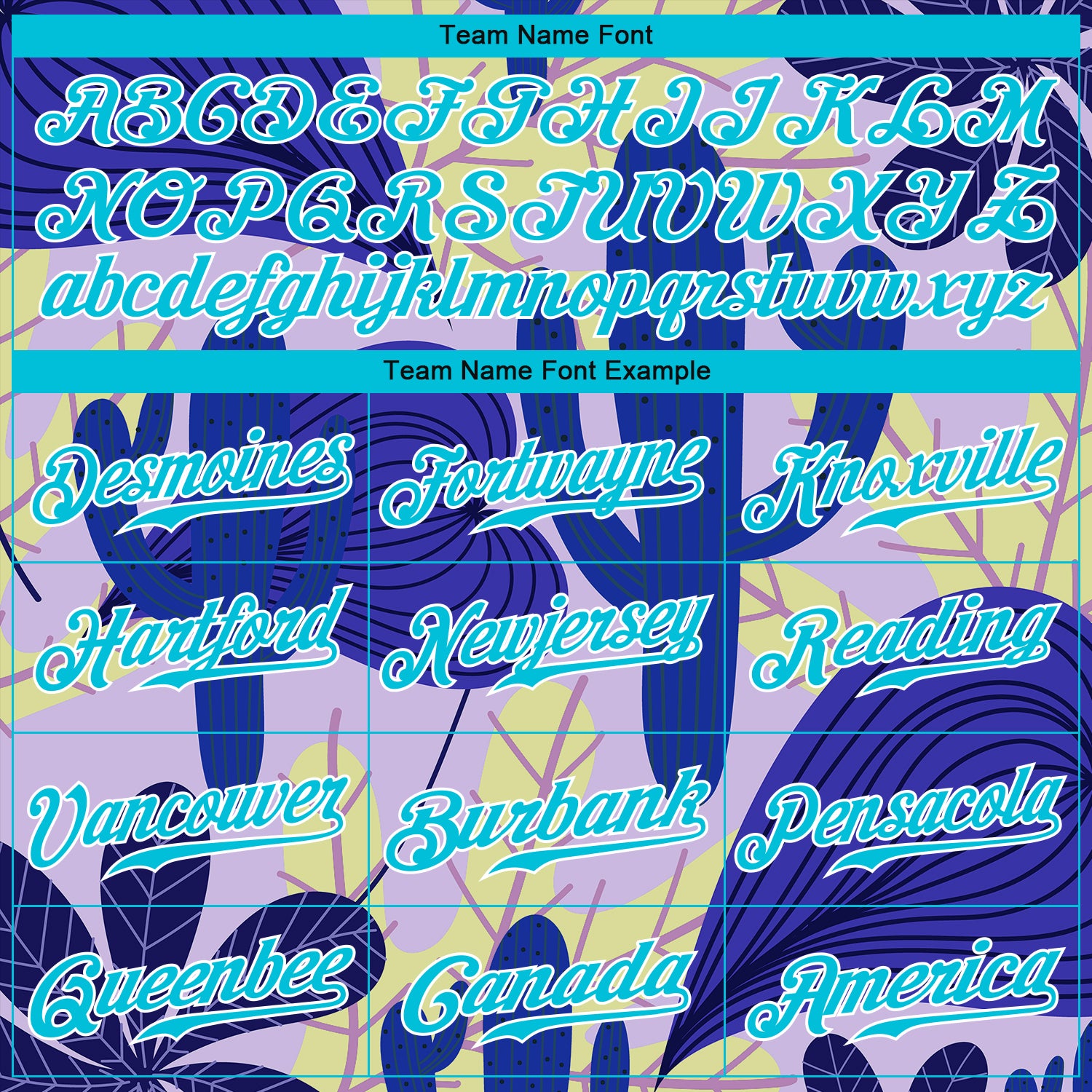 Personalized Purple Lakes Blue-White 3D Pattern Design Cactus And Leaves Authentic Baseball Jersey Team Custom Name and Number