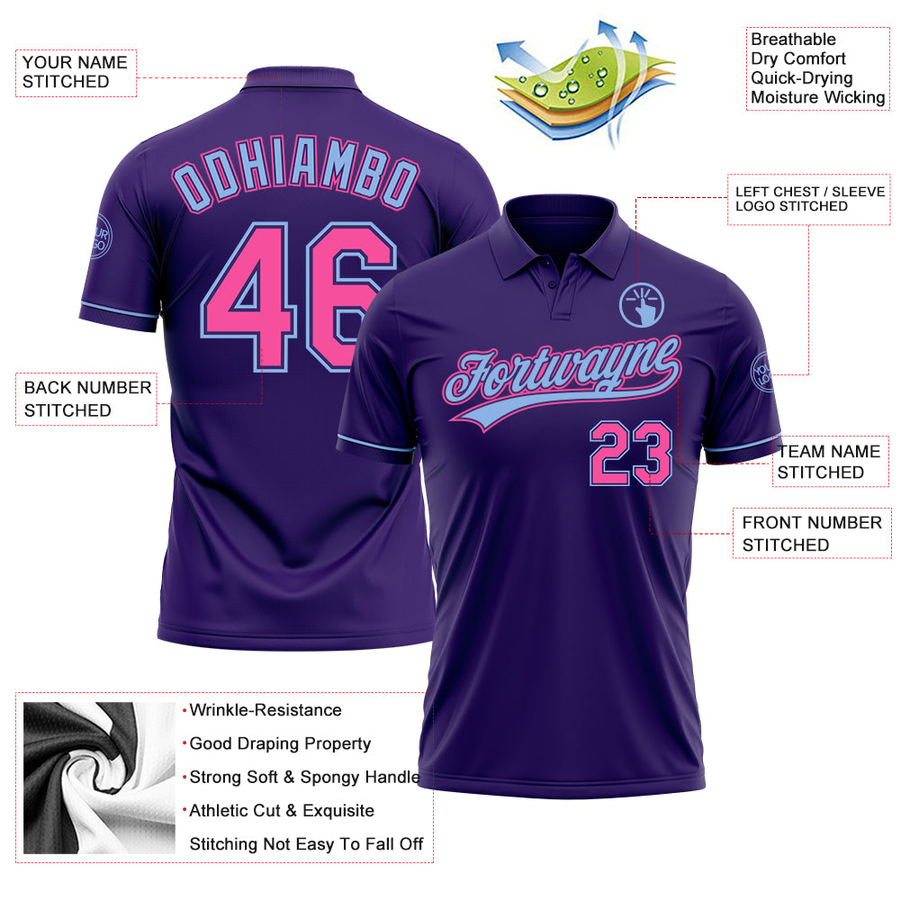 Personalized Purple Pink-Light Blue Performance Vapor Golf Polo Shirt Team Custom Name and Number
