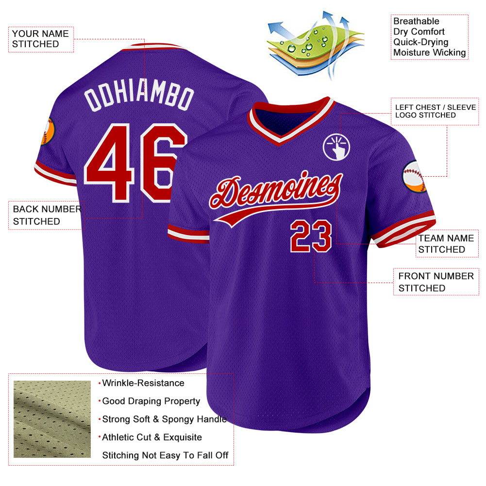 Personalized Purple Red-White Authentic Throwback Baseball Jersey Team Custom Name and Number