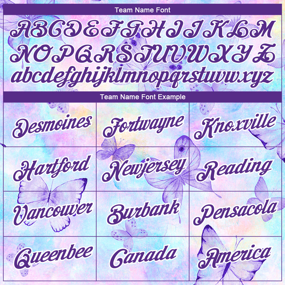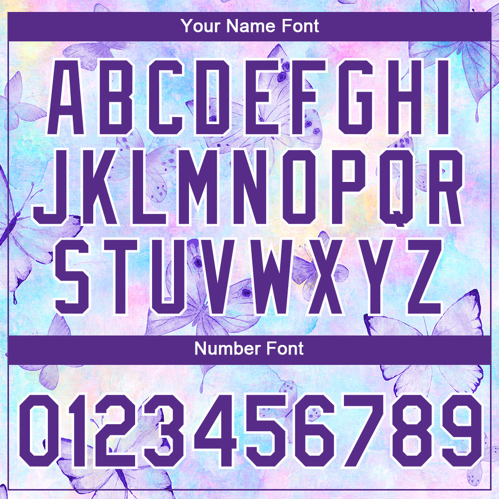 Personalized Purple White 3D Pattern Design Butterfly Performance T-Shirt Team Custom Name and Number