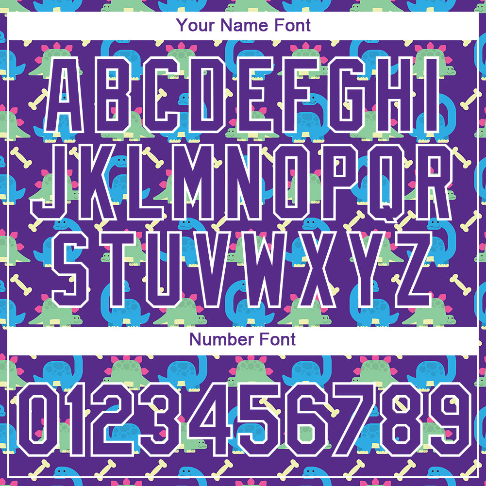 Personalized Purple White 3D Pattern Design Dinosaur Performance T-Shirt Team Custom Name and Number