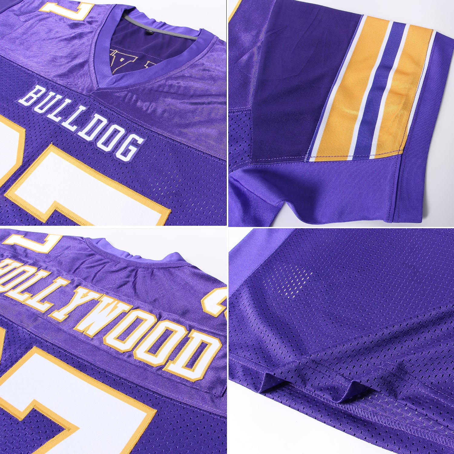 Personalized Purple White-Gold Mesh Authentic Football Jersey Team Custom Name and Number