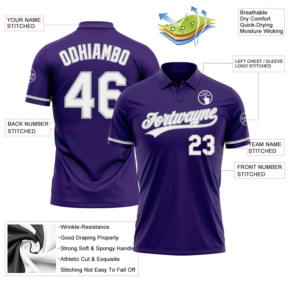 Personalized Purple White-Gray Performance Vapor Golf Polo Shirt Team Custom Name and Number