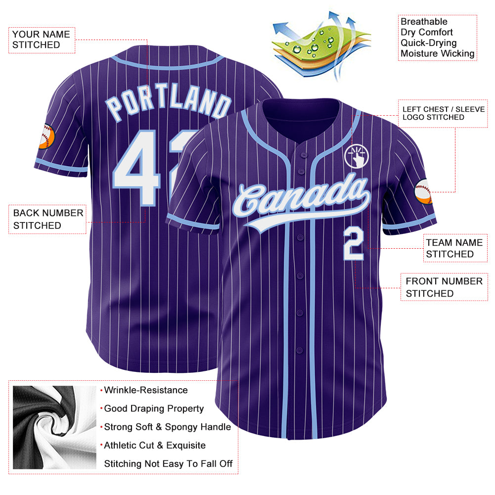 Personalized Purple White Pinstripe Light Blue Authentic Baseball Jersey Team Custom Name and Number