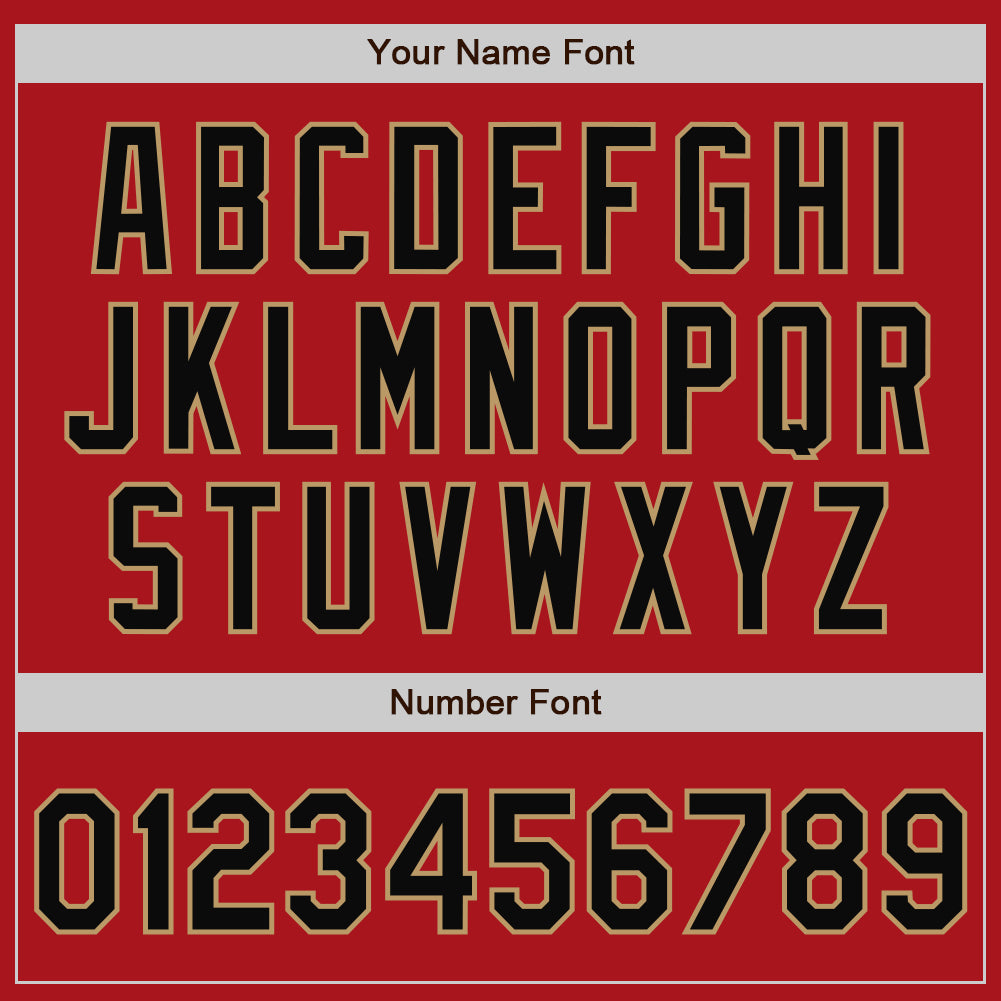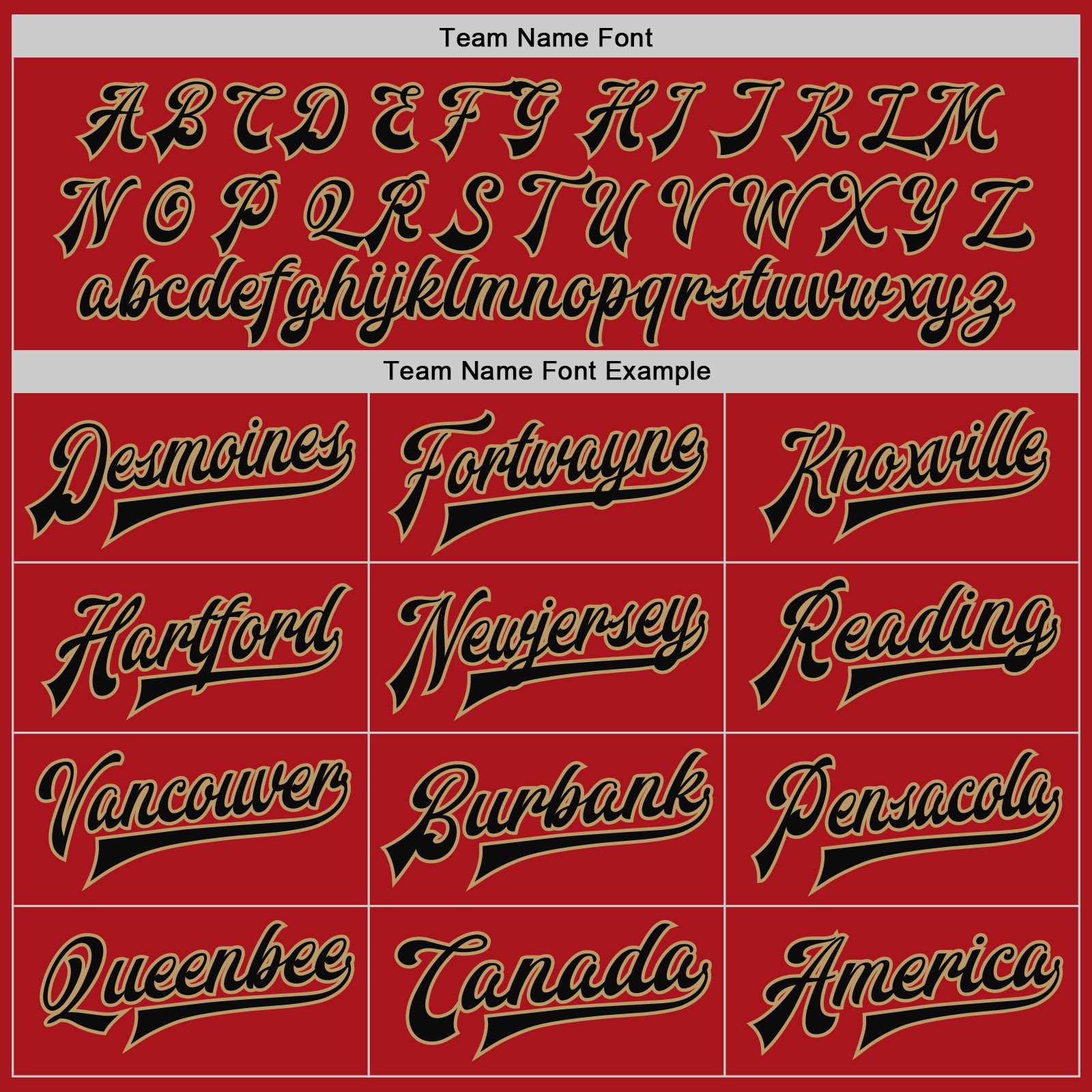 Personalized Red Black-Old Gold Bomber Full-Snap Varsity Letterman Two Tone Jacket Team Custom Name and Number