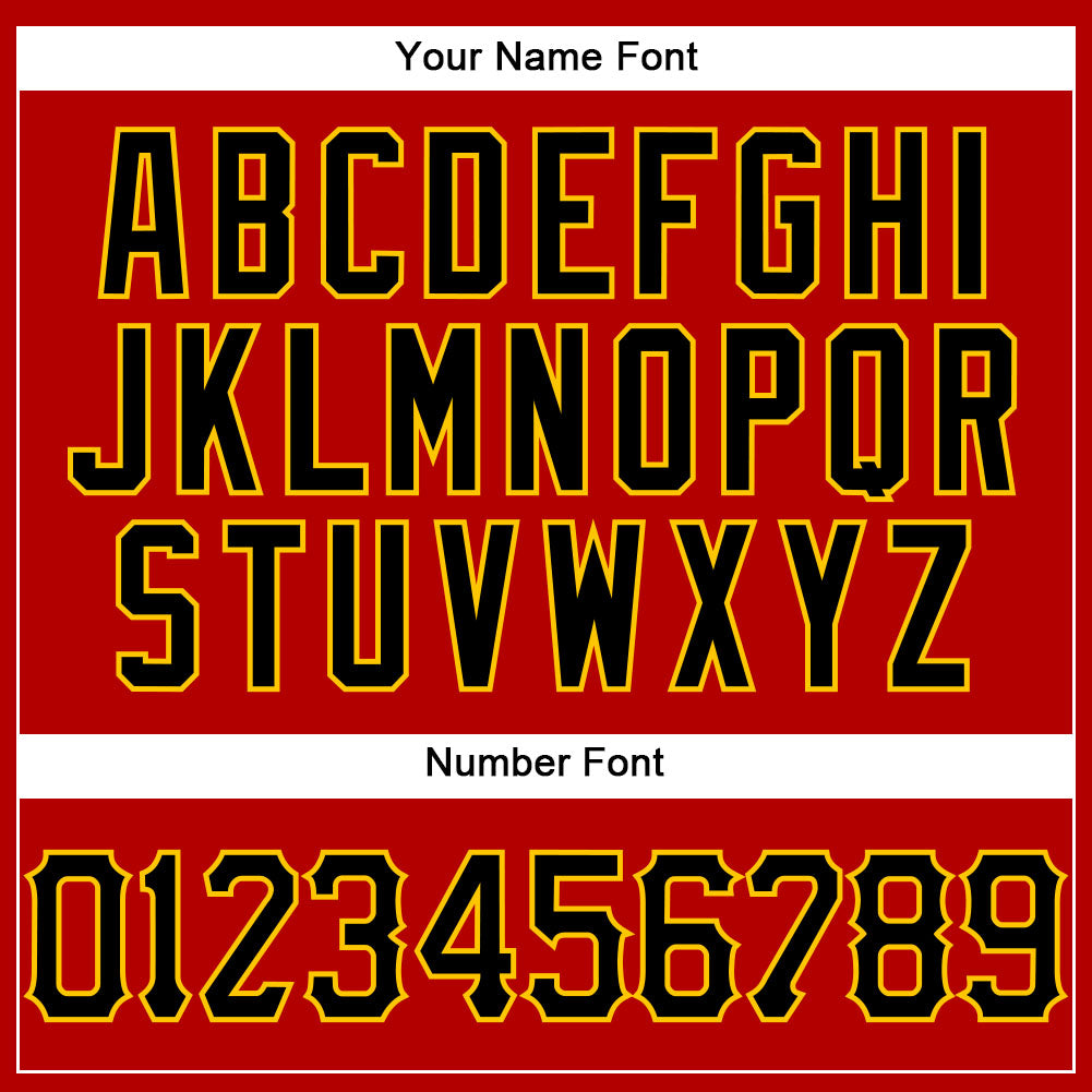 Personalized Red Black Pinstripe Black-Gold Authentic Baseball Jersey Team Custom Name and Number