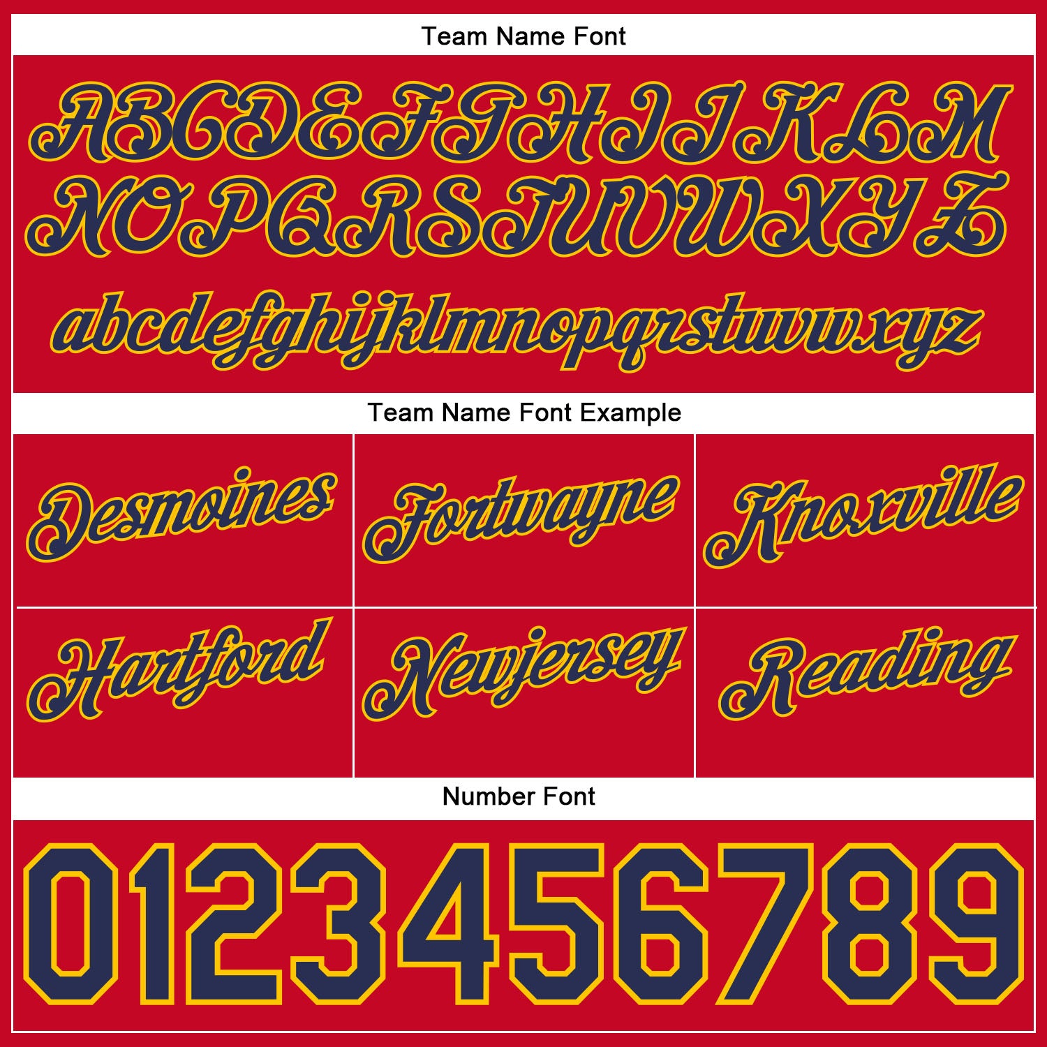 Personalized Red Navy-Gold Authentic Throwback Basketball Shorts Team Custom Name and Number