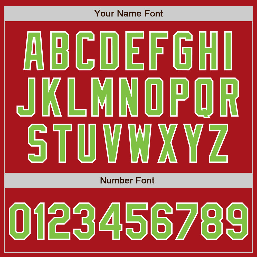 Personalized Red Neon Green-White Bomber Full-Snap Varsity Letterman Jacket Team Custom Name and Number