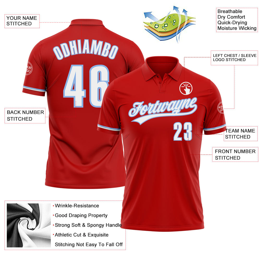 Personalized Red White-Light Blue Performance Vapor Golf Polo Shirt Team Custom Name and Number