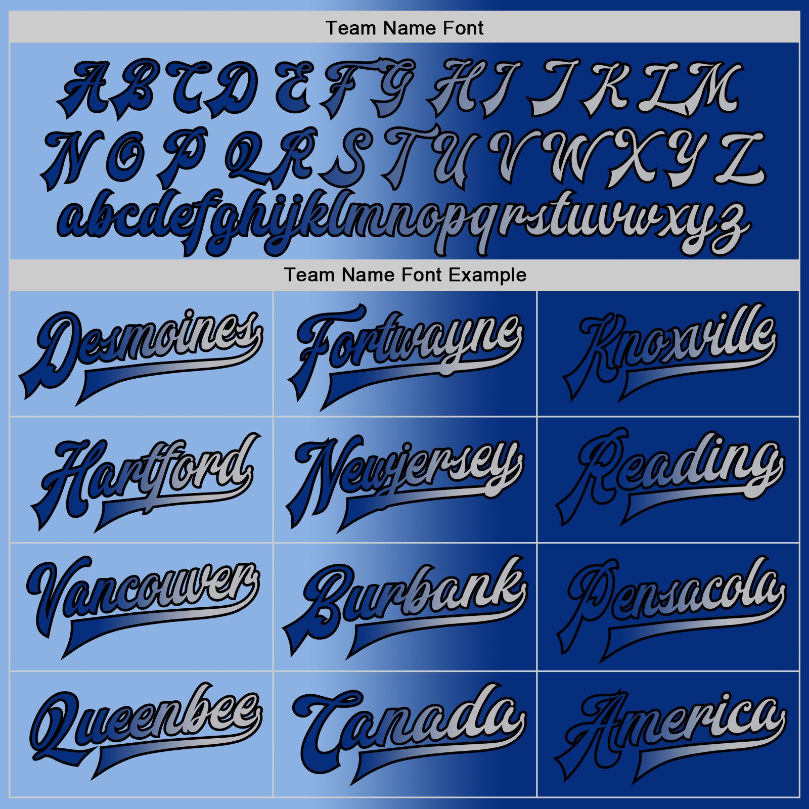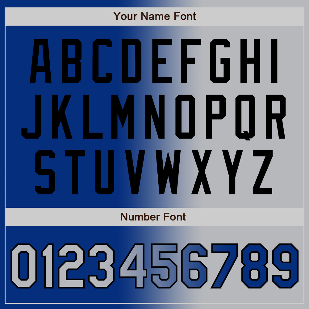 Personalized Royal Gray-Black Bomber Full-Snap Varsity Letterman Gradient Fashion Jacket Team Custom Name and Number