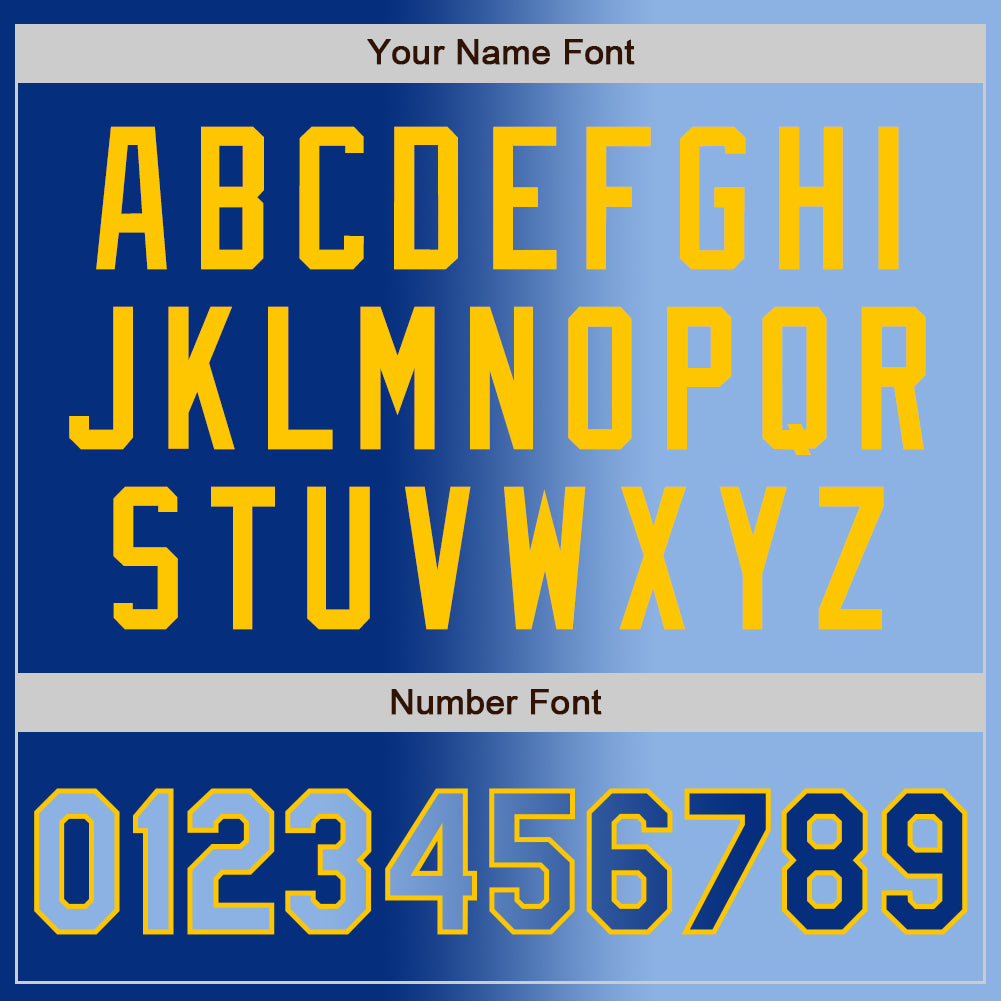 Personalized Royal Light Blue-Yellow Bomber Full-Snap Varsity Letterman Gradient Fashion Jacket Team Custom Name and Number