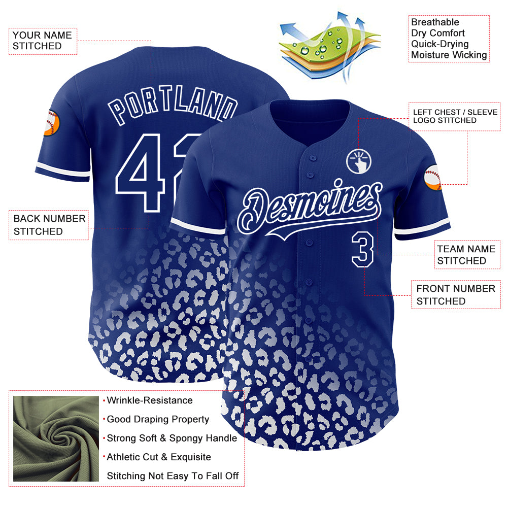 Personalized Royal White 3D Pattern Design Leopard Print Fade Fashion Authentic Baseball Jersey Team Custom Name and Number