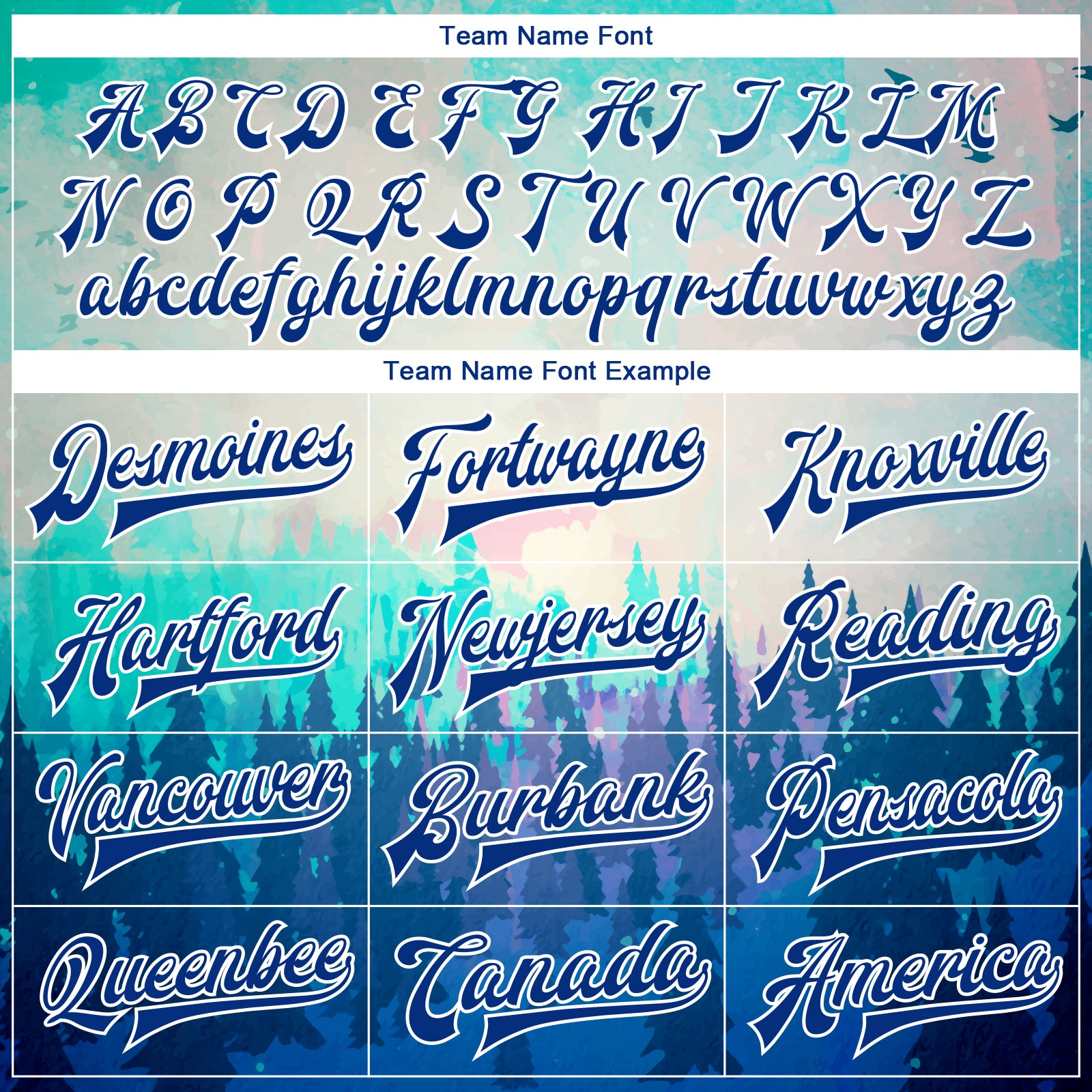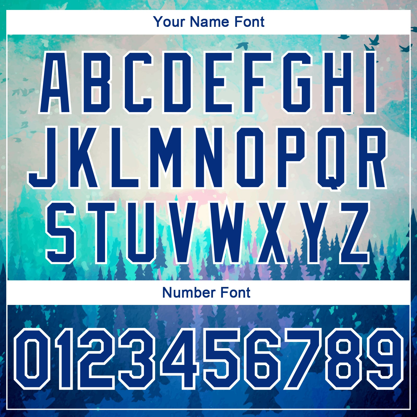 Custom Name Number Varsity Letterman Jacket 3D Pattern Design Bomber Full-Snap Personalized Royal White Daylight Forest Personalized