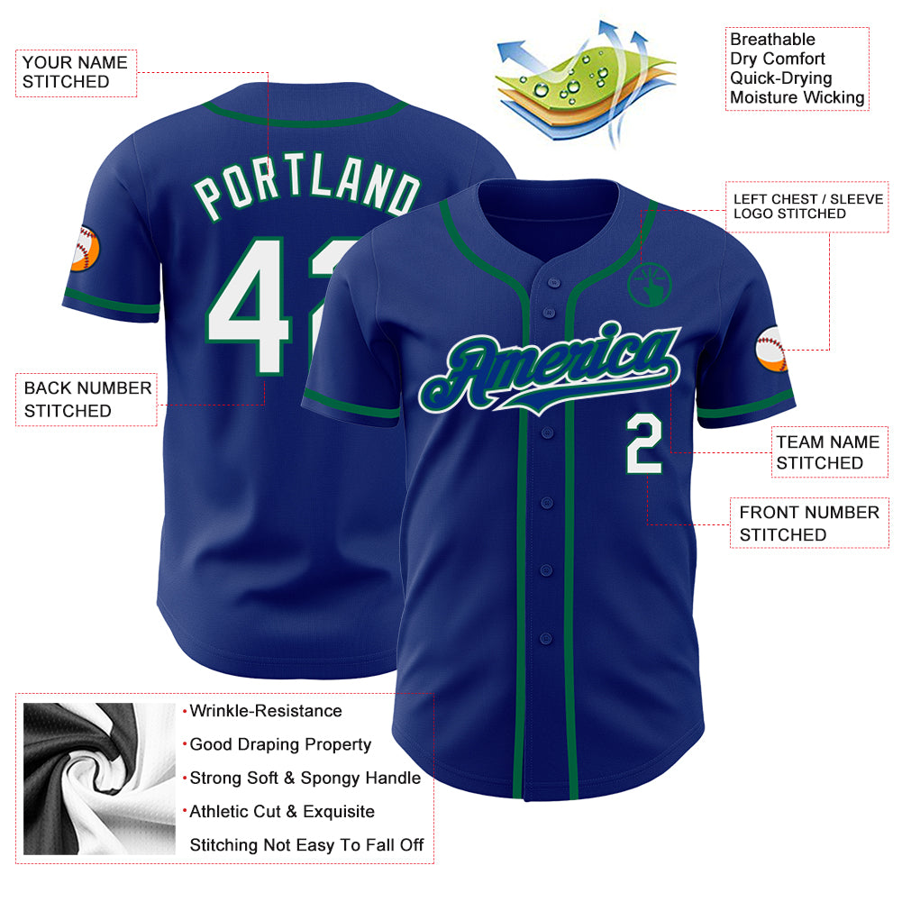 Custom Name and Number Authentic Baseball Jersey in Royal White and Kelly Green – Personalized Team Gear Personalized Royal