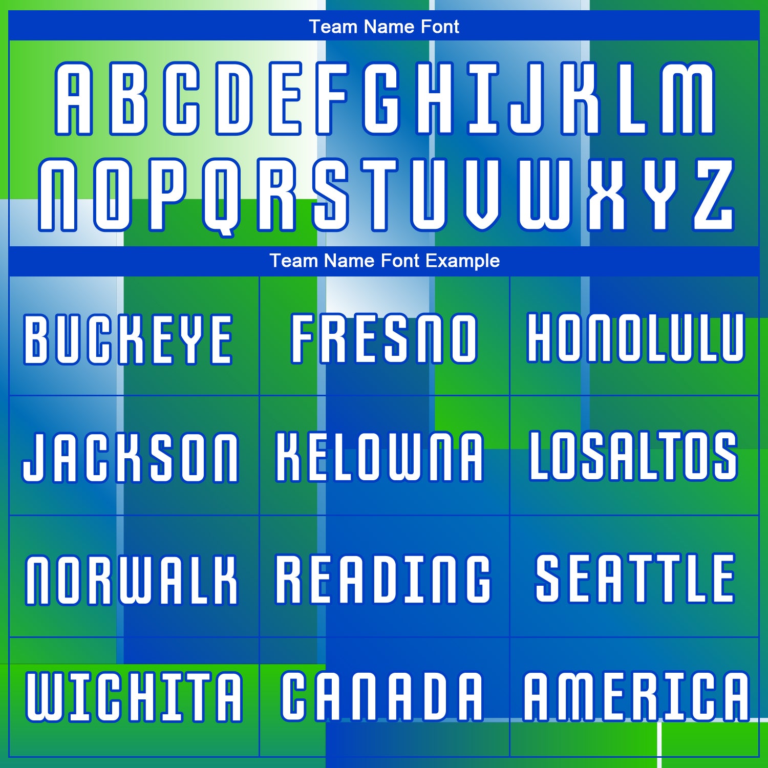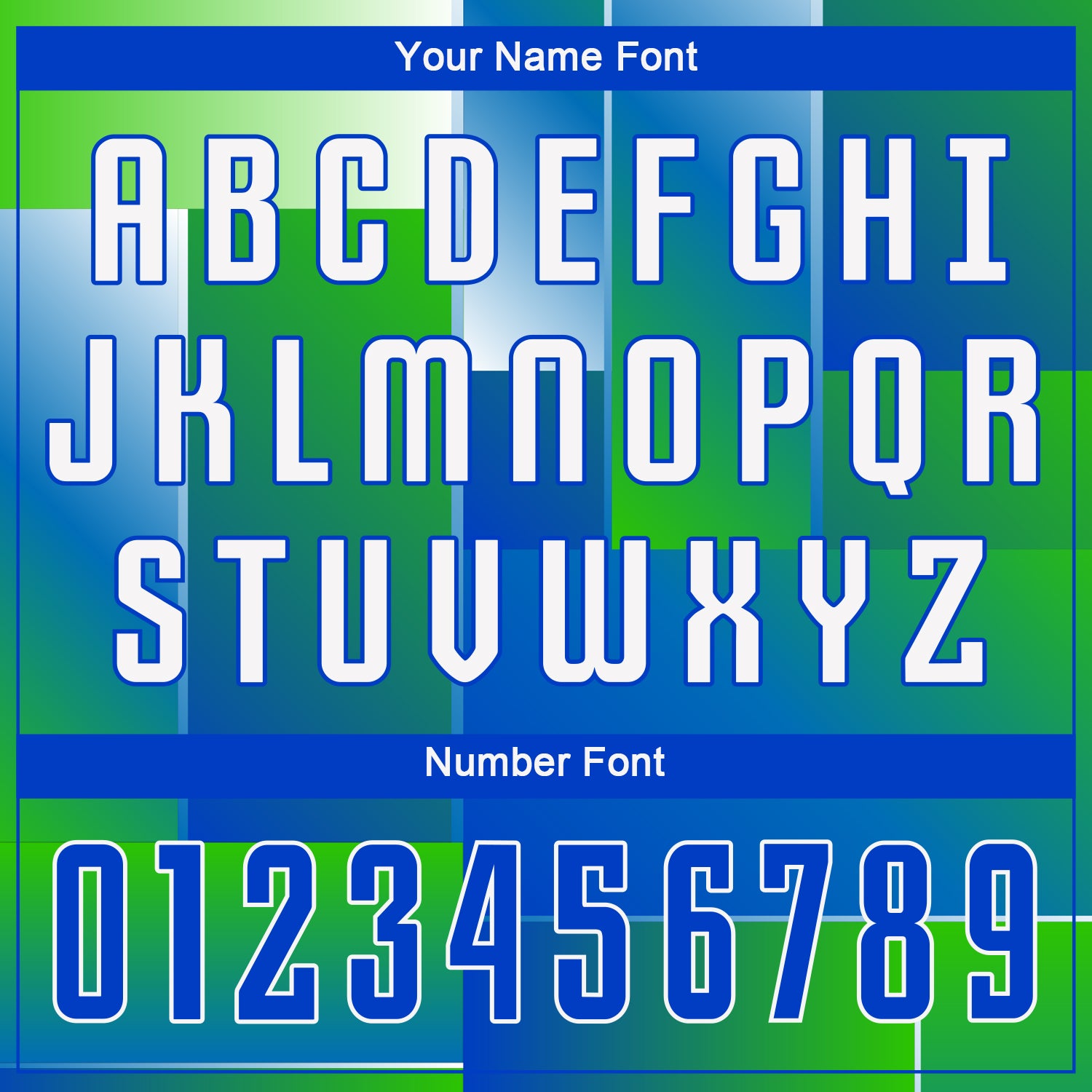Custom Soccer Jersey with Personalized Name and Number – Royal White-Kelly Green Sublimation Team Uniform Personalized Royal