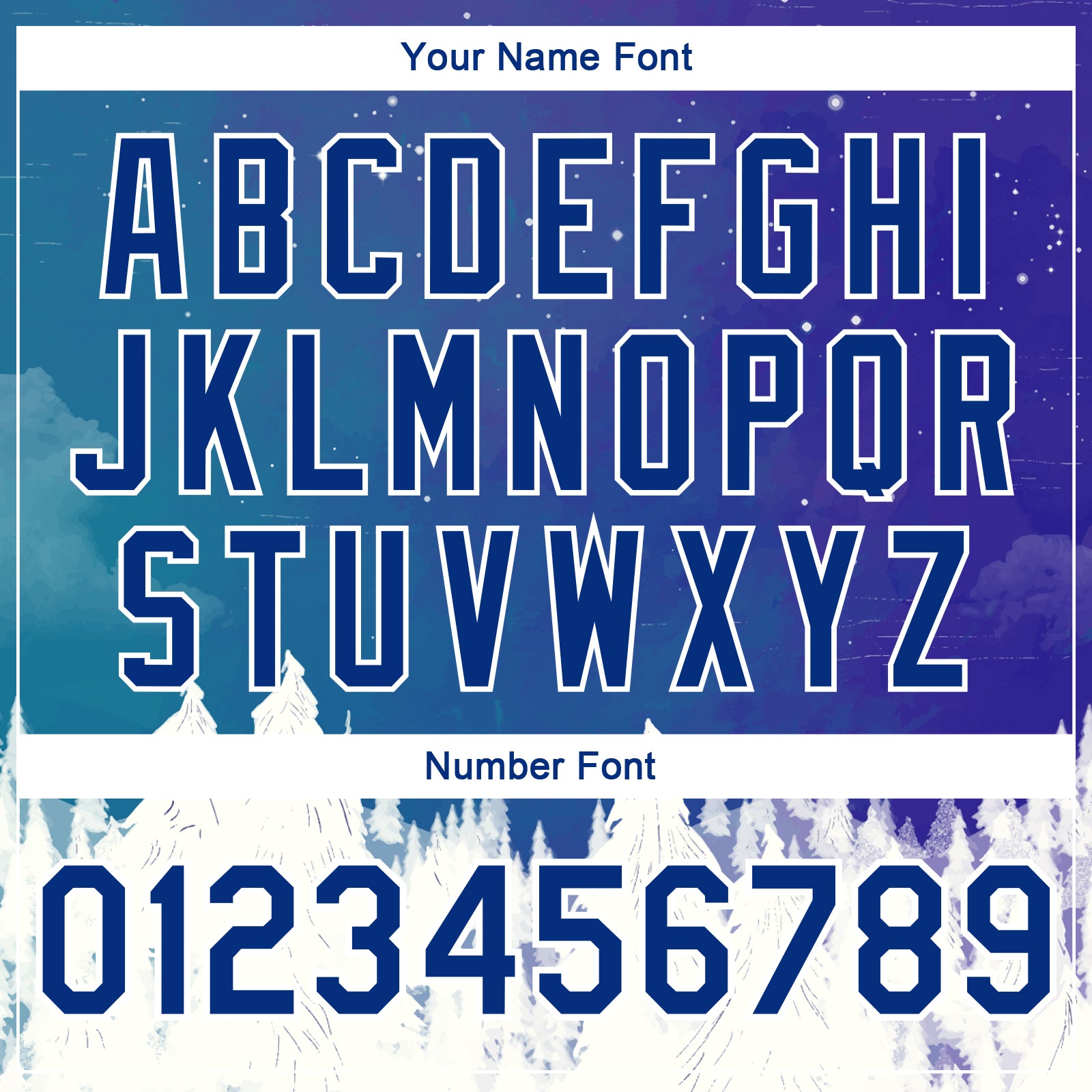 Be the first to review “Custom Name and Number 3D Snowy Trees Winter Landscape Bomber Varsity Jacket – Personalized Royal White Watercolor Design”