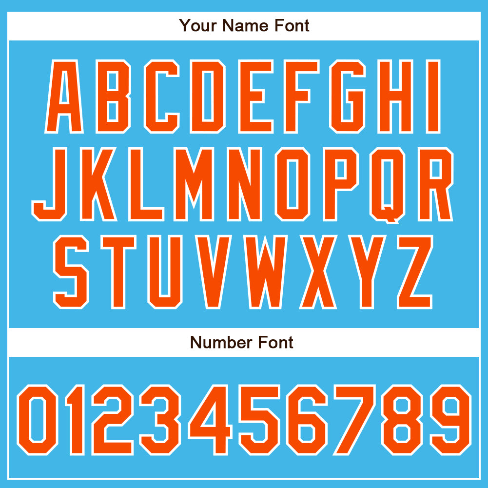 Personalized Custom Baseball Jersey with Sky Blue, Orange & White Design – Team Name & Number Personalized Sky Blue Orange-White