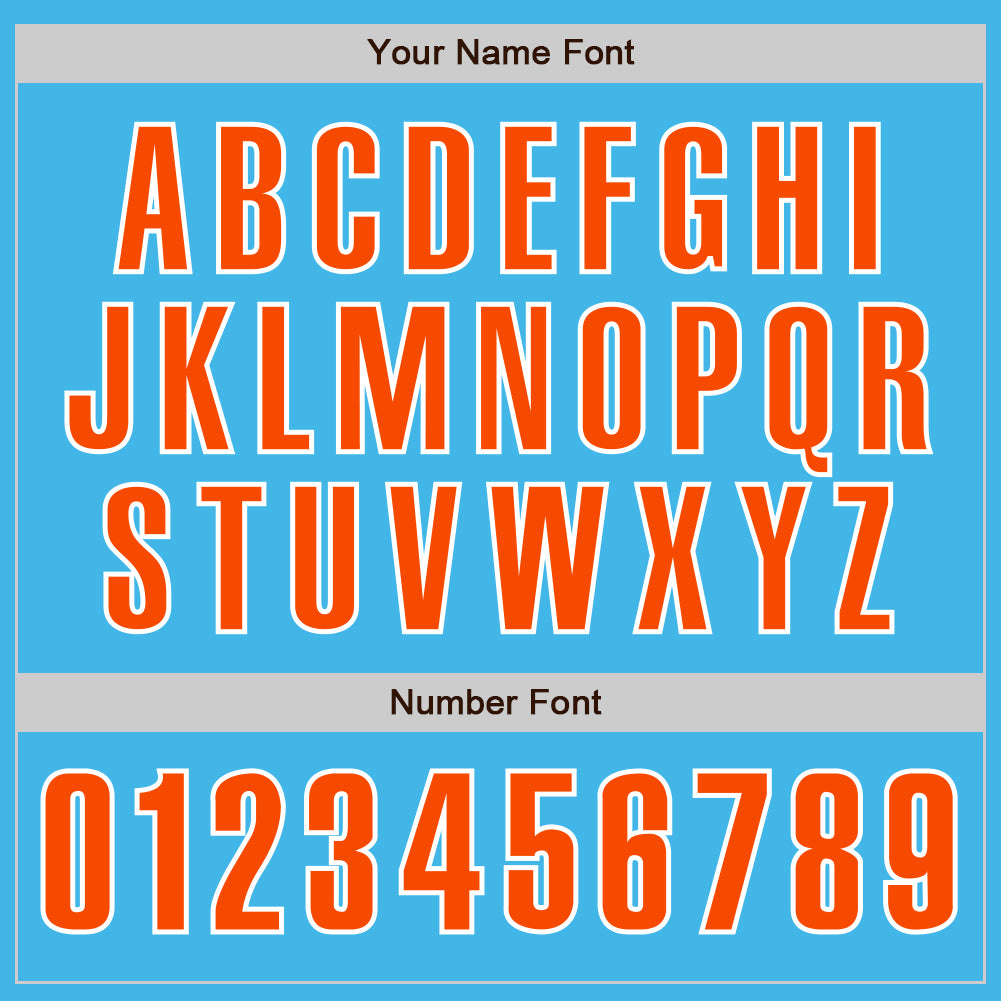 Personalized Baseball Jersey – Authentic Sky Blue Orange-White Design Personalized Sky Blue Orange-White Authentic Baseball