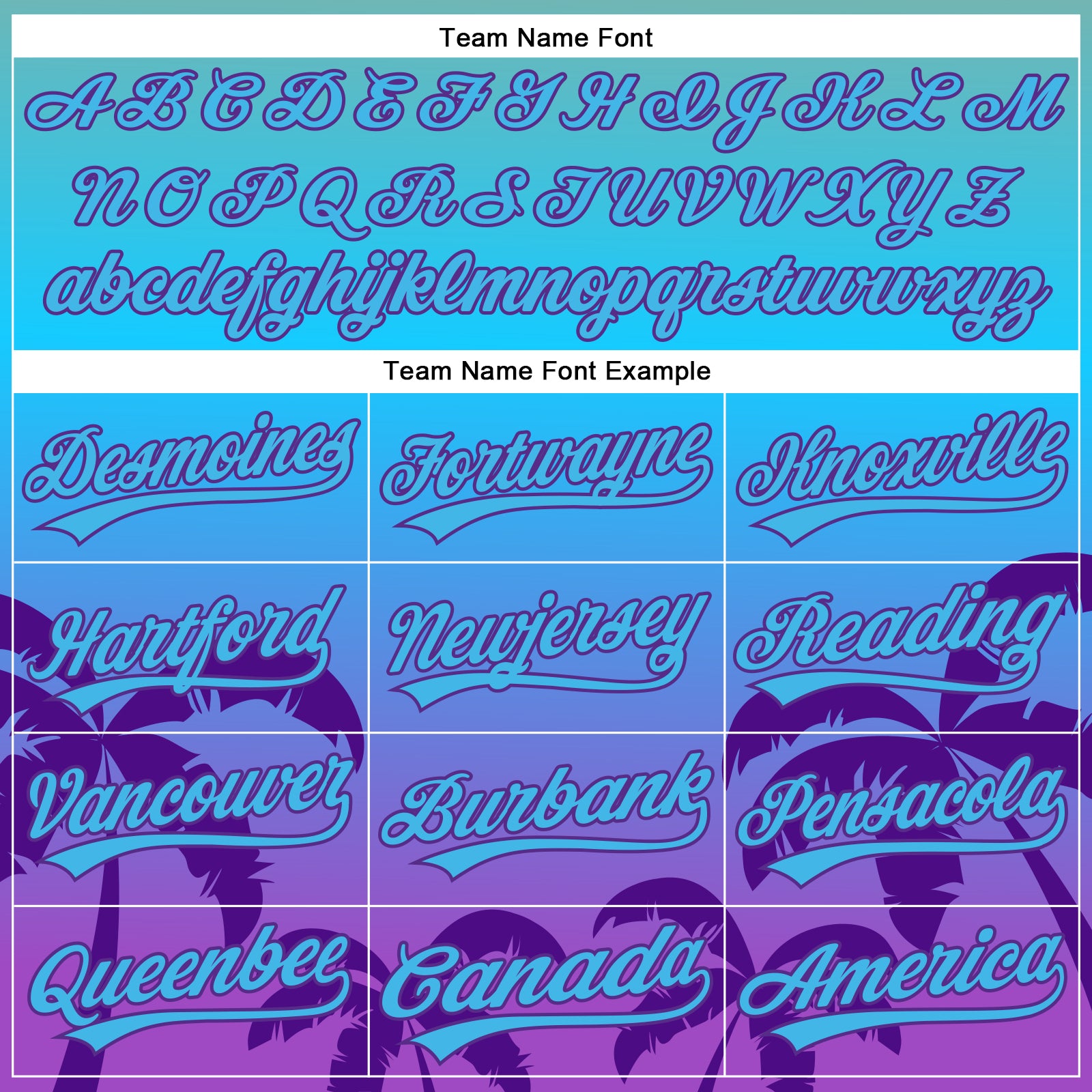 Personalized Sky Blue Purple 3D Pattern Design Hawaii Palm Trees Authentic Baseball Jersey Team Custom Name and Number