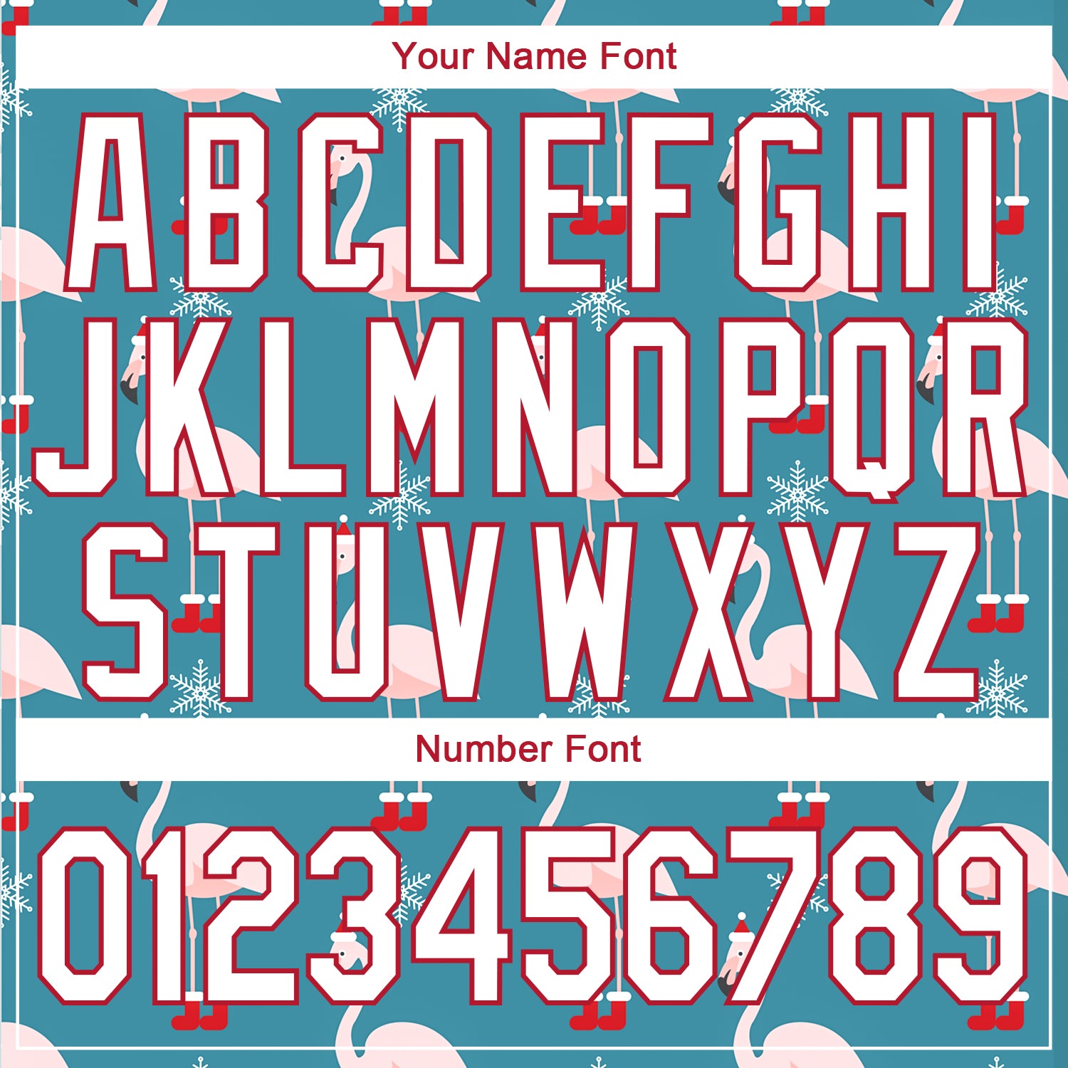 Personalized Stitched Aqua White-Red Christmas 3D Sports Pullover Sweatshirt Hoodie Team Custom Name and Number