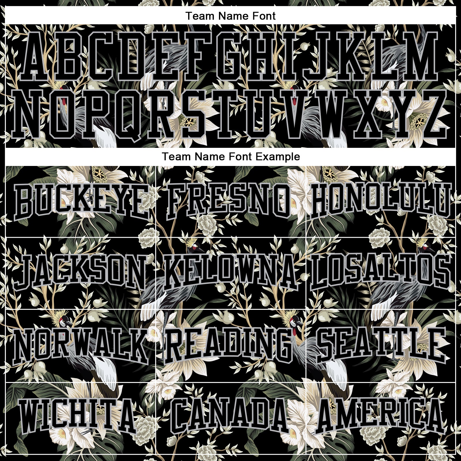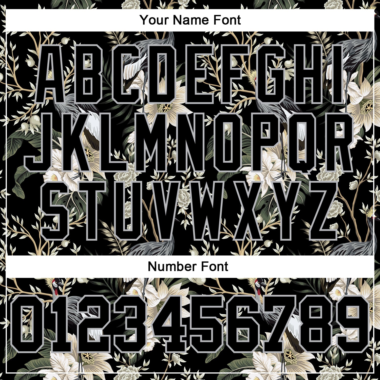 Personalized Stitched Black Gray 3D Pattern Design Heron And Flower Sports Pullover Sweatshirt Hoodie Team Custom Name and Number